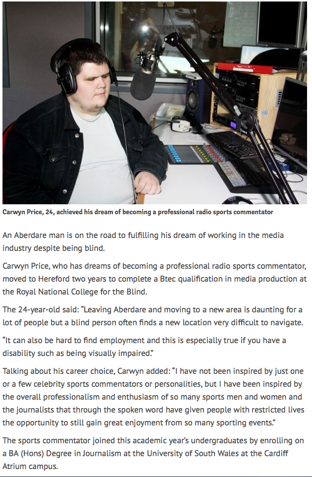 Carwyn makes the newspaper Posted on November 16, 2014September 12, 2015 by byroncalloway007 You can listen to my interview with Carwyn here: Share this: Click to share on X (Opens in new window) X Click to share on Facebook (Opens in new window) Facebook Like Loading... Related