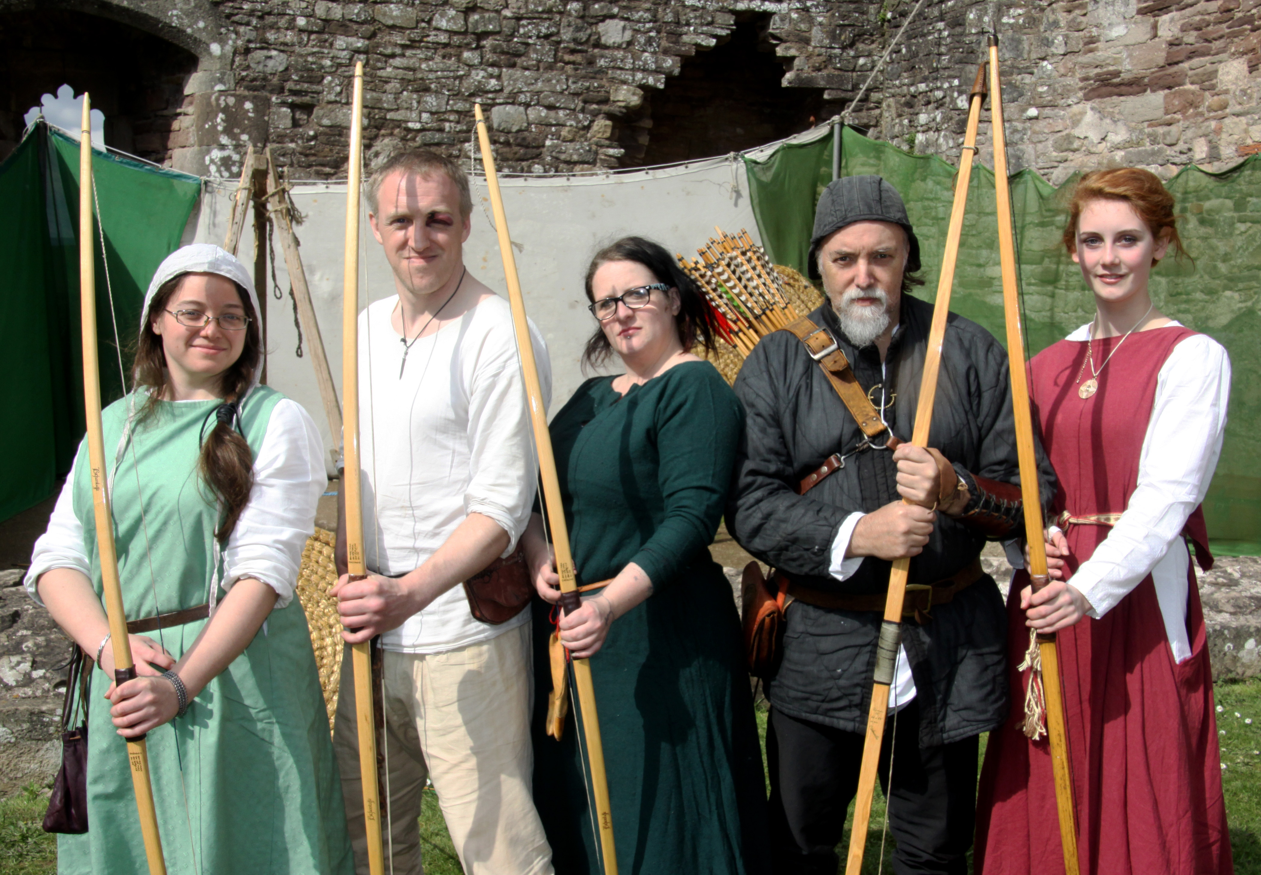Photographed are five members of The Knights of Longshanks. L-R Samantha Baker, Robin Boazman, Amy Louise Stockwood, Mick Baker, Elizabeth Webster who provided opportunities to experience archery for children and adults. The Knights of Longshanks will transport you back to the 13th Century.