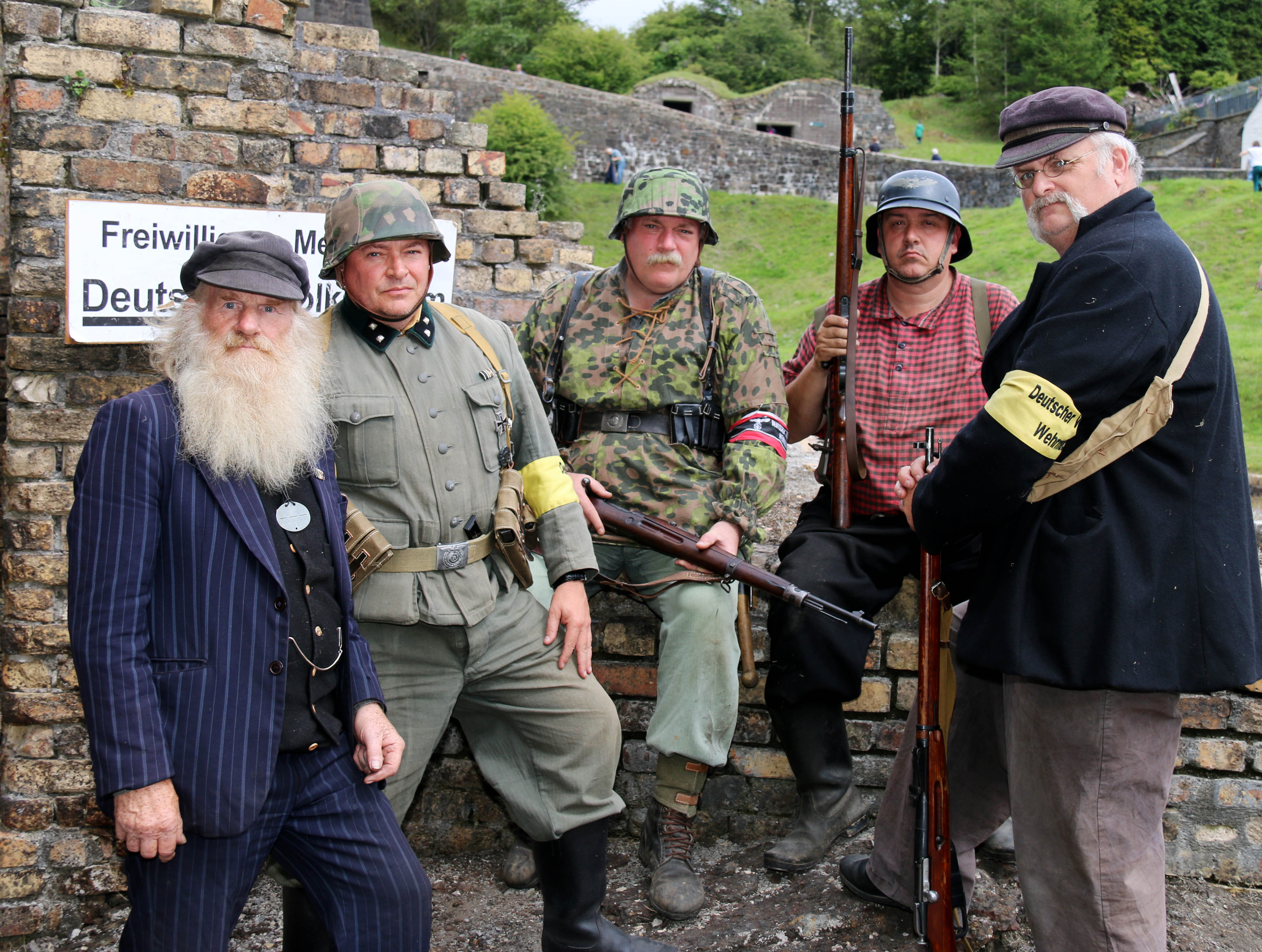 German fighting unit with reinforcements from members of the German Home Defense Guard (Left to Right) Mickey Skates, Steve Martens, Tim Chance, Adrian Hull and Max Kingsford.