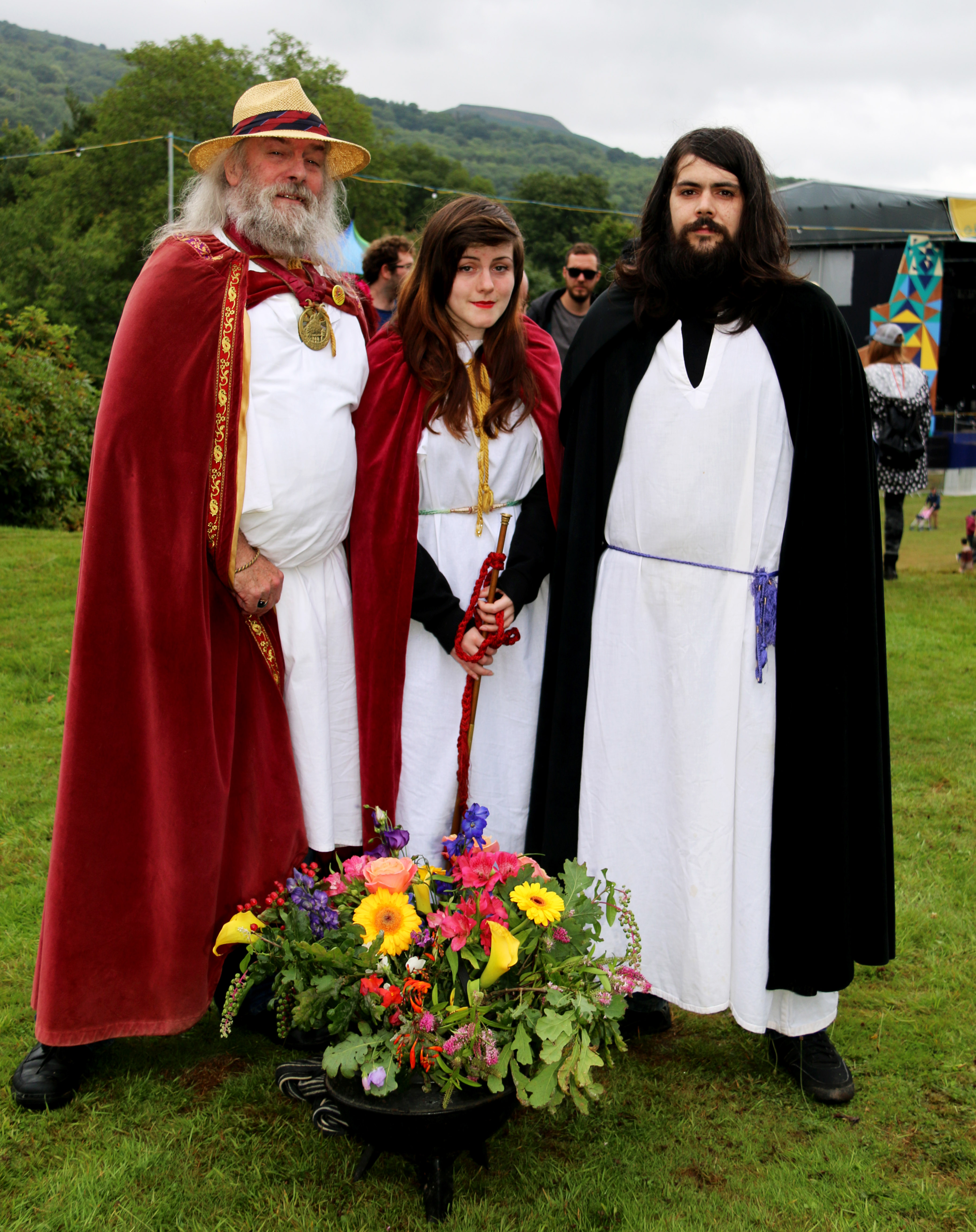 Rollo Maughfling is the Archdruid of Stonehenge and Britain. He is a long-time campaigner for the restoration of traditional rights of access to druidic sites, and respect for ancient druidic rituals. Pictured (Left to Right): Rollo Maughfling, Ellie Maughfling and Samuel Scobie performed the Green Man opening ceremony. Rollo said: “We called upon the spirit of the Sun and the Earth to bless the Green Man ceremony by means of communal chanting of the IAO, the ancient druid meditation of the West.”